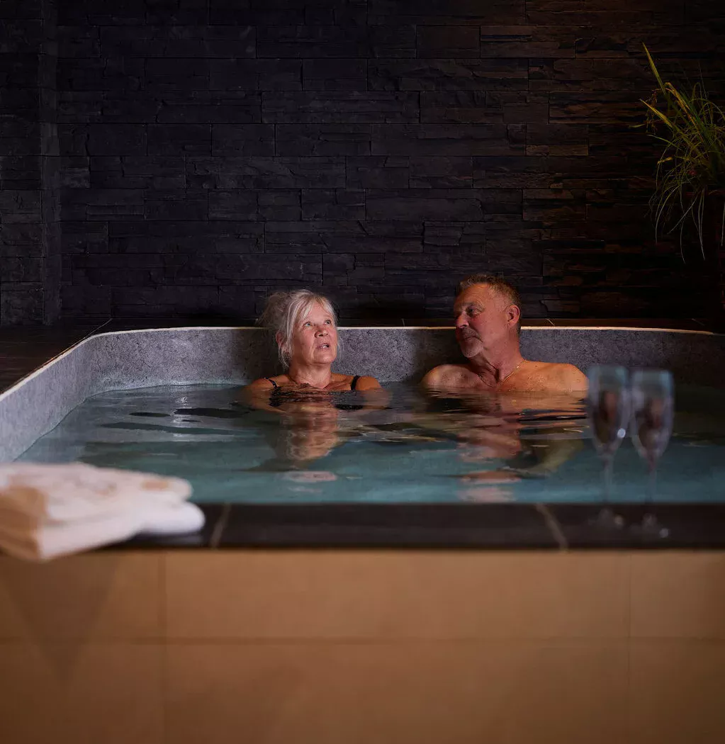Njut i hotellets sparelax. I aromarummet som är ett rum för avkoppling, blir du behandlad med aromaterapi, genom att du andas in den aromaolja som finns i luften. Kryp ner i 38 gradig varm källa och känn hur musklerna slappnar av. Torrbastun håller ca 80 grader och ångbastun ca 45 grader. Vill du ”basta på riktigt” och verkligen sätta fart på cirkulationen, finns en kallvattentunna i taket utanför bastun. Du kan också boka en behandling eller själv genomföra en badritual.