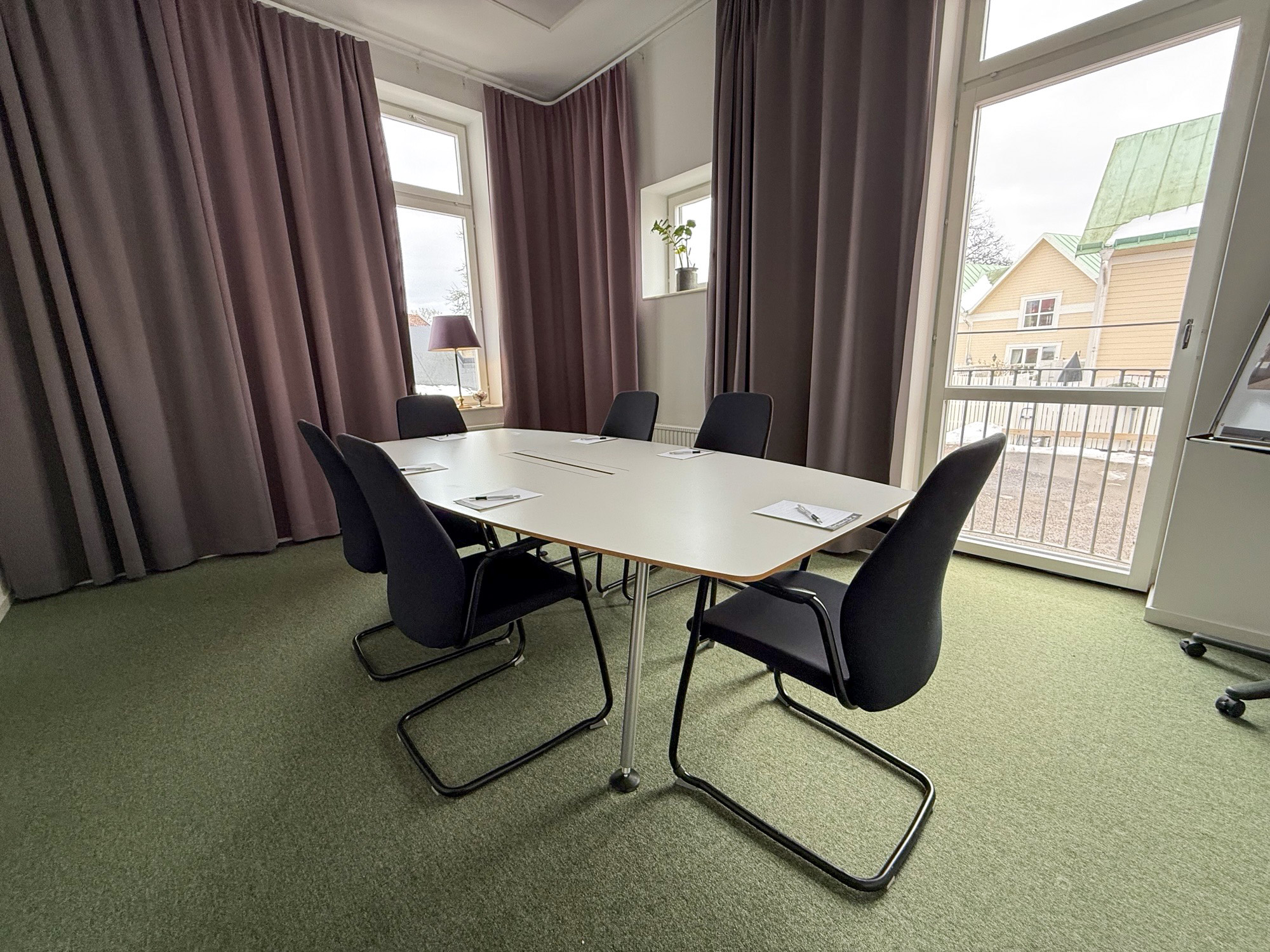 Trevlig lokal med ett fast styrelsebord som rymmer upp till åtta personer. Kråmö är ca 15 kvm.